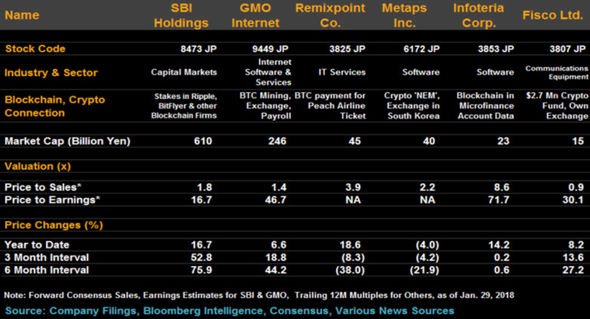 世界第2の規模の仮想通貨不正流出があったものの、日本は今後もアジア最大の仮想通貨市場であり続けるだろう。新たな規制で制約が生じても、中国と韓国に比べれば日本市場の開放性は高い。日本のブロックチェーン関連企業では、日本の仮想通貨取引所大手であるビットフライヤーに出資するSBIホールディングスとGMOインターネットが最も有力である。