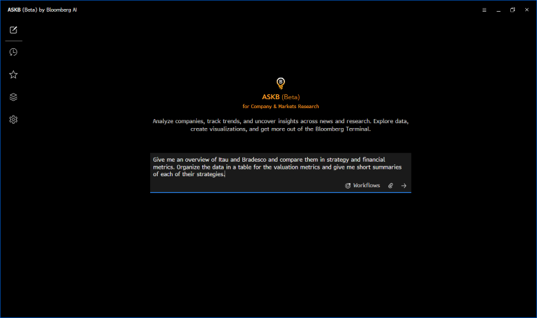 - ASKBワークフロー:データ、ニュース、リサーチ、分析を構造化されたアウトプットにまとめ、複数のステップにわたるリサーチ作業を迅速化