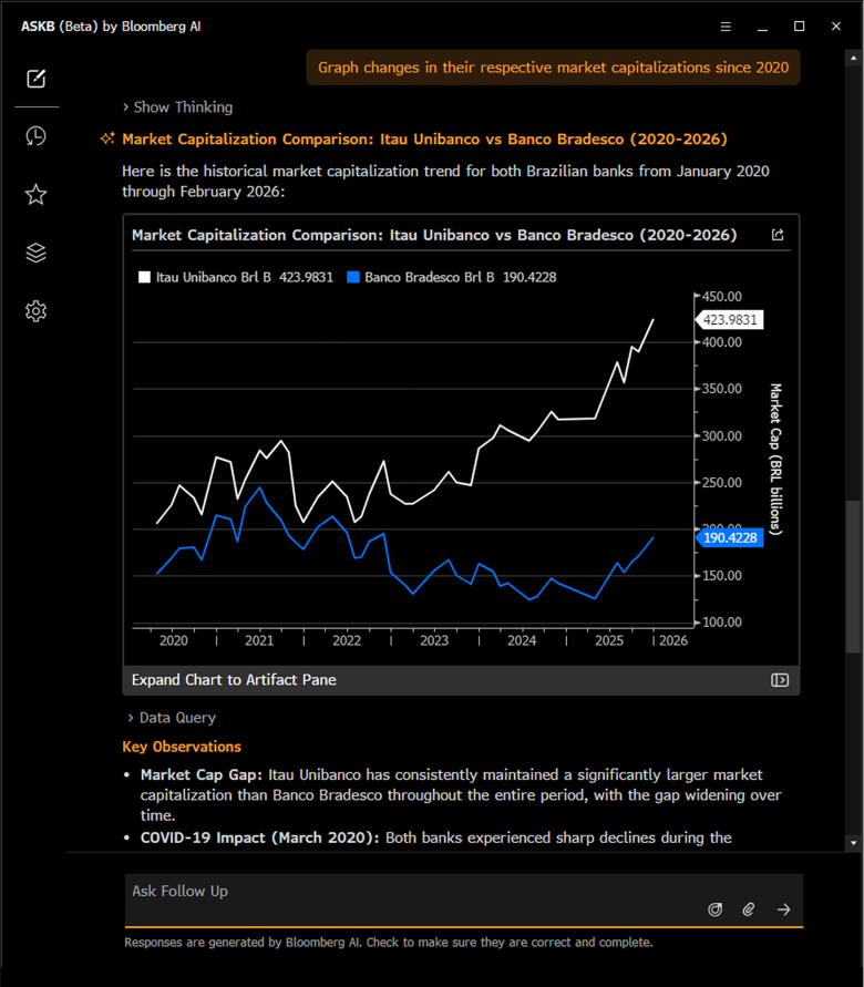 ASKBは、複数の商業用およびオープンウェイトの大規模言語モデル(LLM)を活用し、ブルームバーグの「責任あるAI原則」に沿って開発されています。ASKBが導き出す全ての回答は、高品質で信頼性の高いデータに基づいて構築されており、情報源となった文献やニュースソースを、透明性をもって明示しています。回答にデータ分析が含まれる場合、ASKBは、その基礎となるブルームバーグ・クエリ言語(BQL)コードを提供します。これにより、ユーザーはMicrosoft® Excel®、BQuantデスクトップ、BQuantエンタープライズで即座に分析を拡張できます。