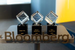 BQuant Master Mind賞:開発サポートにあたったブルームバーグのディベロッパーやCTOオフィスメンバーにより選出。プレゼンテーションでは見ることのできない、精密なデータ処理やユーザーに長く使われるためのUIの工夫などにフォーカスした賞。