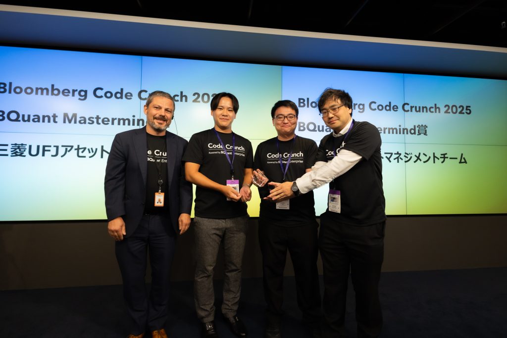 ブルームバーグは2025年10月9日、東京オフィスで「Bloomberg Code Crunch 2025」を開催しました。金融機関の実務担当者がBQuantエンタープライズを活用し、約5か月にわたり開発した金融分析アプリケーションを発表しました。本イベントには、国内の主要資産運用会社や保険会社、銀行など7チームが参加。データサイエンスとAIを活用した実践的な金融ソリューションが次々と披露され、参加者の真剣な姿勢と創意が随所に感じられる内容となりました。