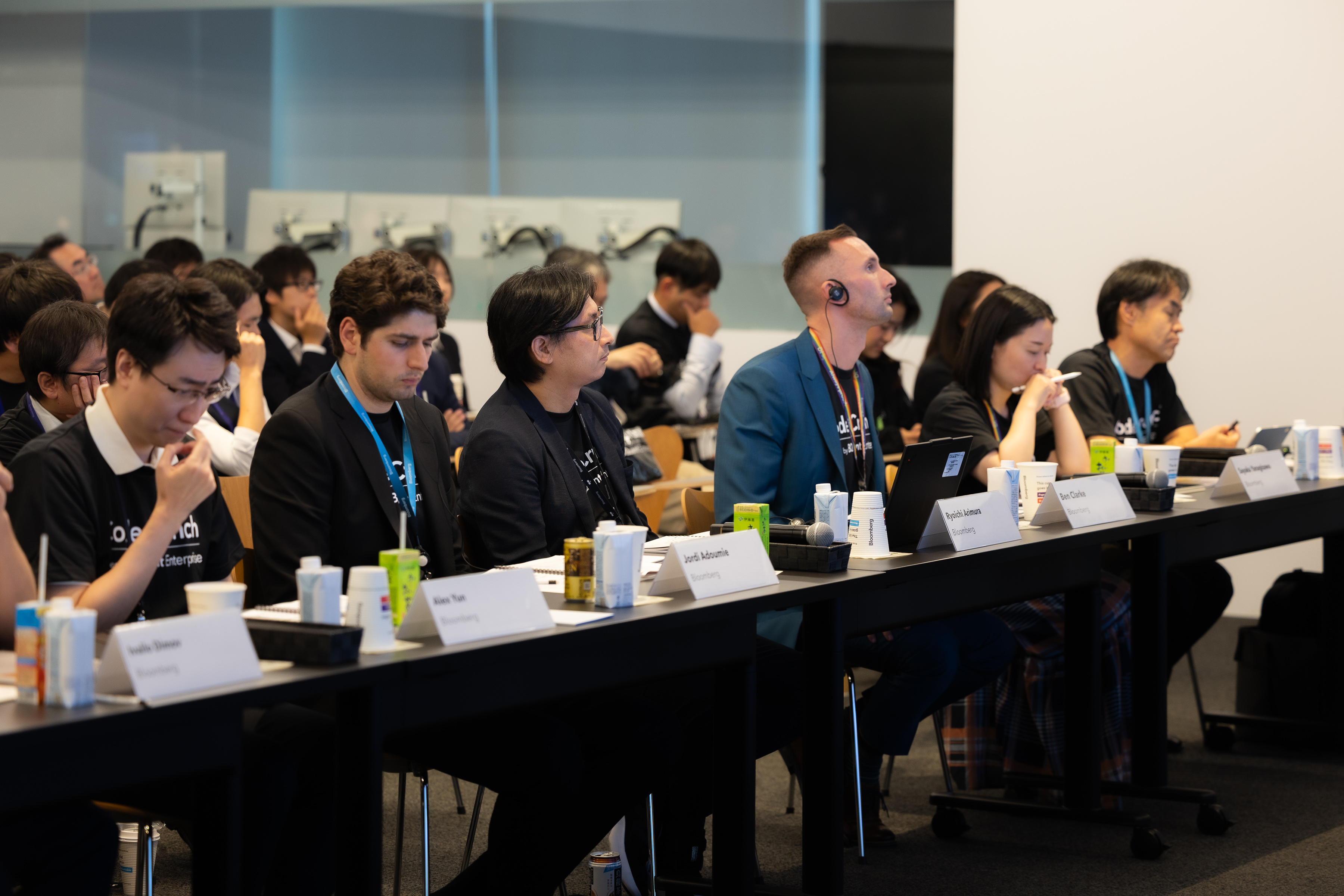 閉会の挨拶では、ブルームバーグAPACテクノロジーチームのジャスティン・ルンが登壇し、「日本市場ではDXや資産運用立国の機運が着実に形になっている。今回のCode Crunchはその象徴であり、ここでの成果をアジア全体へ共有したい」と述べました。また、参加チームへの感謝とともに、「ブルームバーグのテクノロジーが実務の変革に貢献できていることが、私たちにとって最大の喜びです」と結び、イベントを締めくくりました。